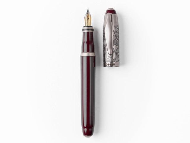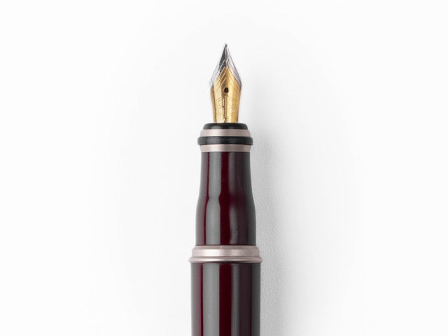 The Empress commands attention with its striking wine-hued body, a canvas of understated elegance. Crowned with a lustrous metallic cap, this fountain pen merges contemporary design with timeless refinement. Each detail speaks to the discerning writer—the deep, rich burgundy finish paired with gleaming metallic accents creates a sophisticated instrument that performs as beautifully as it appears. Perfect for those who demand both substance and style in their everyday writing.